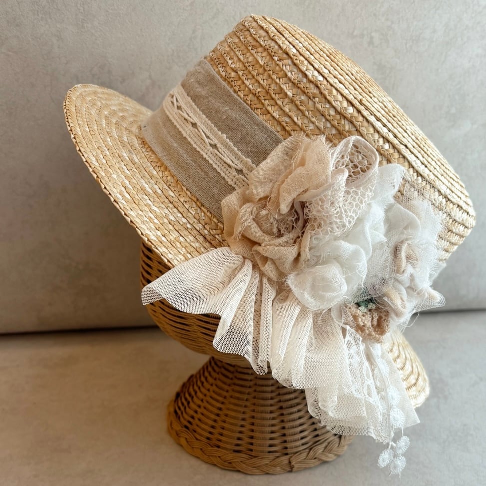 『 顔のバランスがきれいにみえるカンカン帽 』